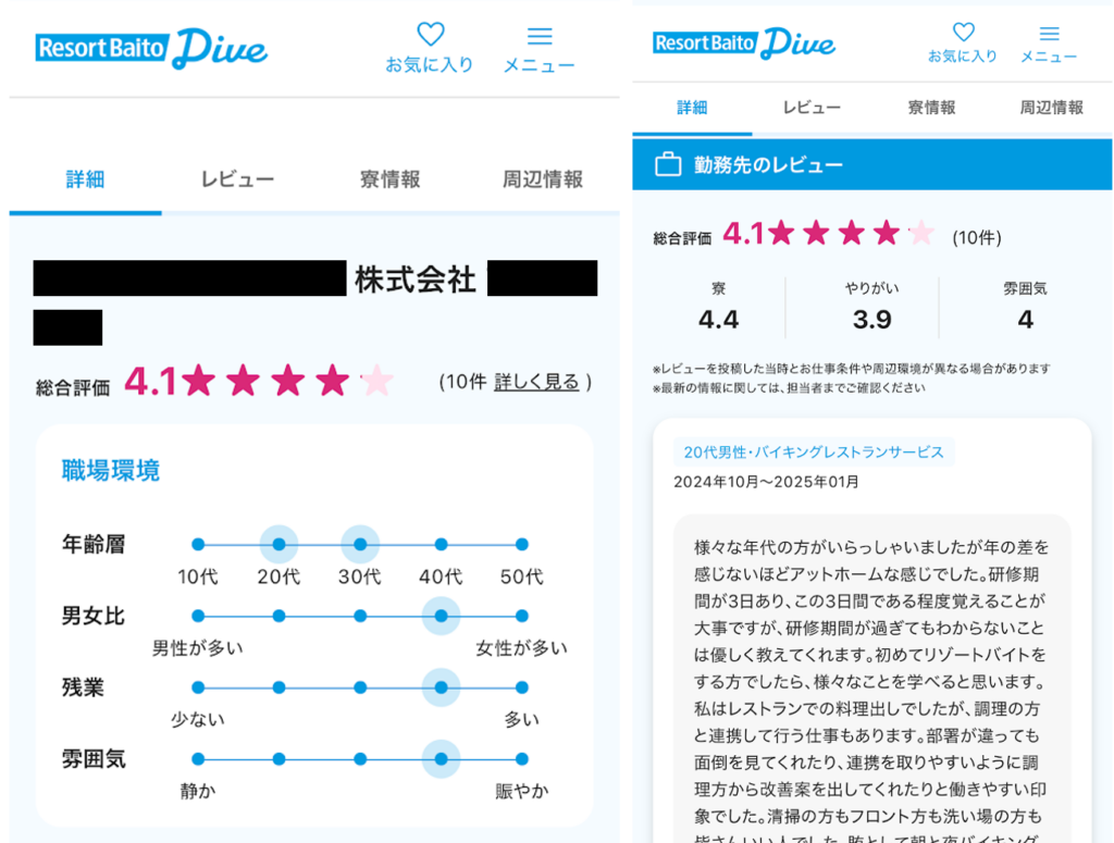 引用元:リゾートバイトダイブ